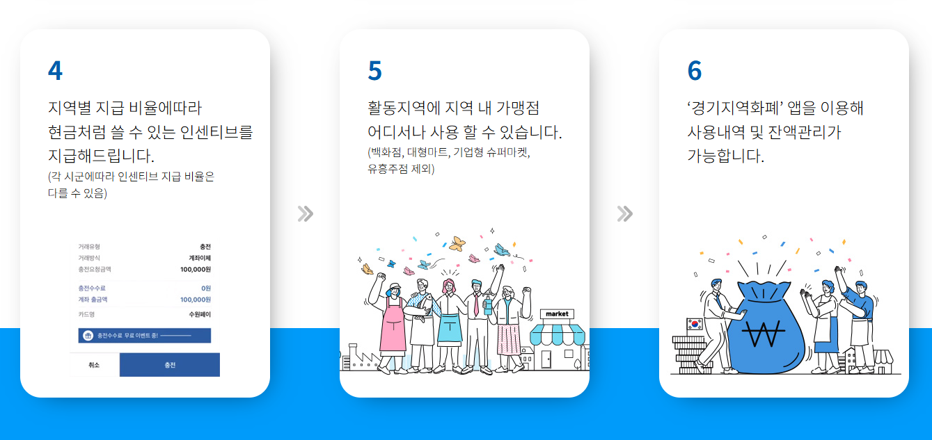 많은 지자체가 충전 시 10% 인센티브를 제공해 예를 들어 9만 원 충전 시 10만 원이 지급됩니다.