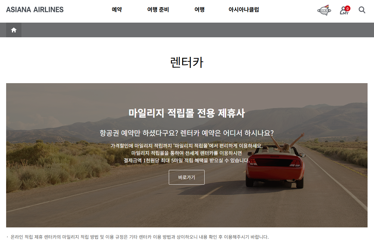 마일리지로 항공권만 구매해야 한다는 고정관념은 이제 옛말입니다. 아시아나 렌터카 제휴 서비스를 통해 제주도, 해외 여행지에서 마일리지로 차량을 예약할 수 있습니다. 최근까지 운영되던 오토웨이렌터카, 하나렌터카 등 제휴처는 마일리지몰 개편과 함께 일부 종료되었지만, 새로운 통합 플랫폼에서 렌터카 예약이 재개될 예정입니다.