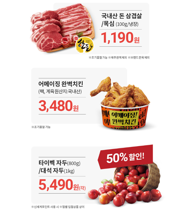 - 국산 과일: 신세계포인트 적립 시 반값 적용