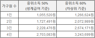 ✔️ 주요 적용 소득 기준 (2025년 기준)
