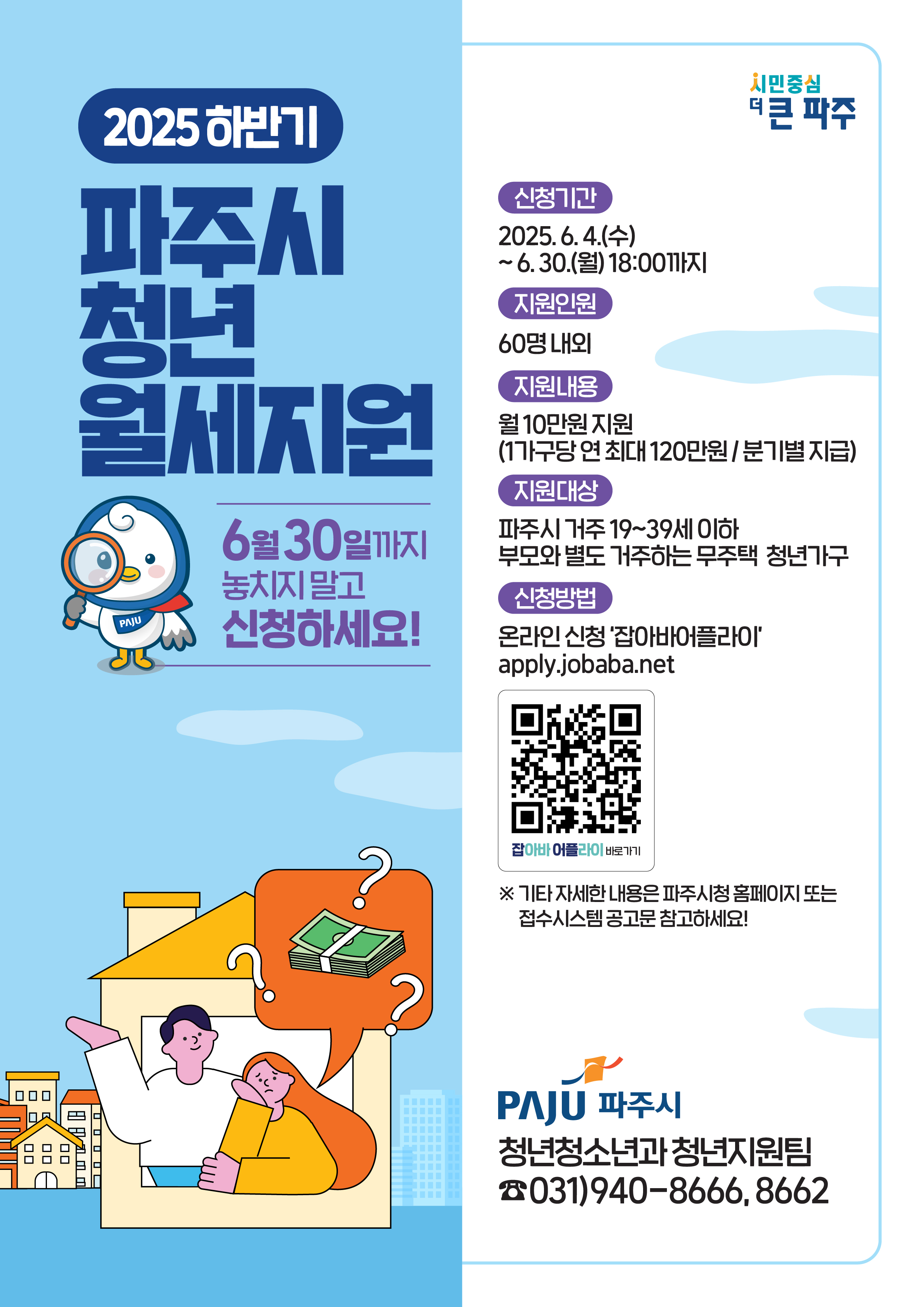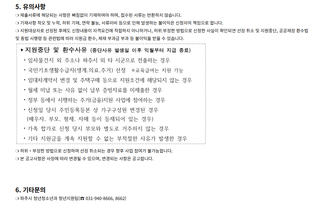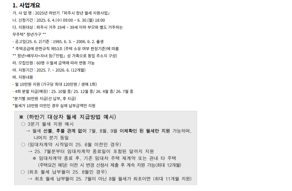 2025년 하반기 파주시 청년 1인가구 월세 지원사업 신청 가이드