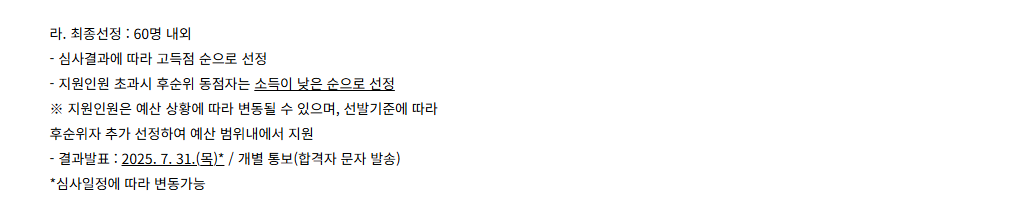 - 선정 발표: 2025년 7월 31일 (목) 개별 문자 발송