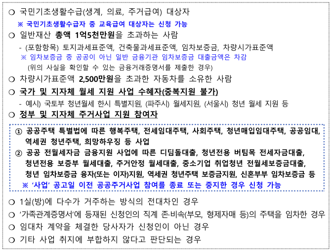 ※ 기초생활수급자, 주택 소유자, 타 월세 지원사업 수혜자 등은 제외됩니다.