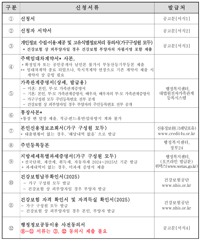 - 주택기준: 전·월세 보증금 1억 원 이하, 월세 50만 원 이하