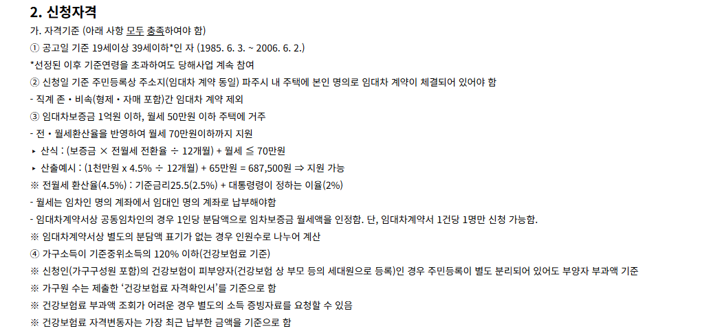 - 연령: 만 19세 ~ 39세 (1985.1.1. ~ 2006.12.31. 출생자)