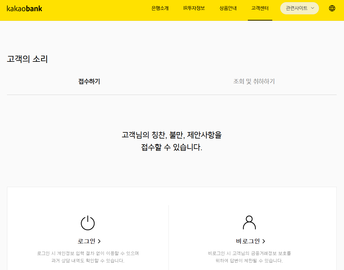 1. 카카오뱅크 앱 실행 → 전체 메뉴 또는 고객센터 접속