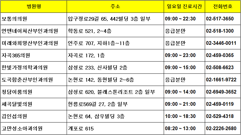 🏥 강남구 일요일 진료 소아과 병원 예시 (2025년 기준)