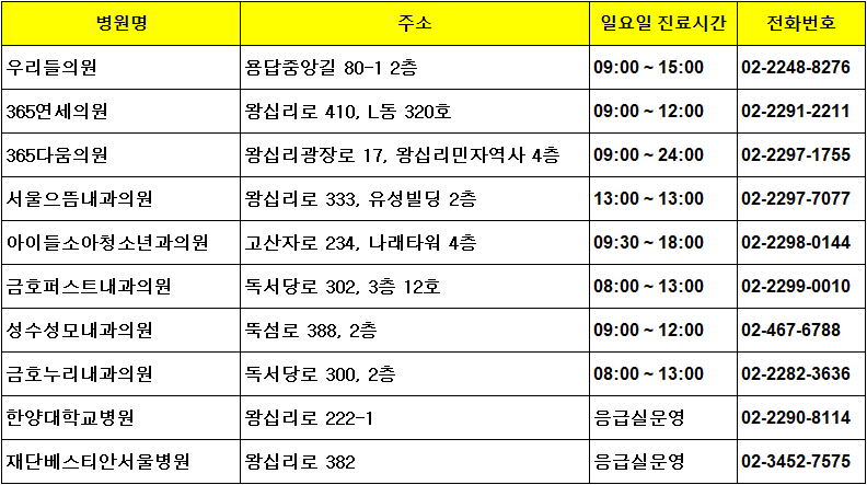 그래도 성동구에는 일요일 진료하는 소아과가 있으니 너무 걱정하지 마세요.