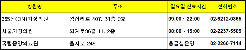 당황하지 말고 중구 내 일요일 진료 병원부터 확인해보세요.