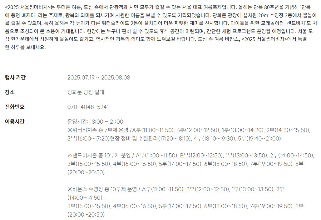 - 🎪 행사명: 2025 서울썸머비치 (Seoul Summer Beach)