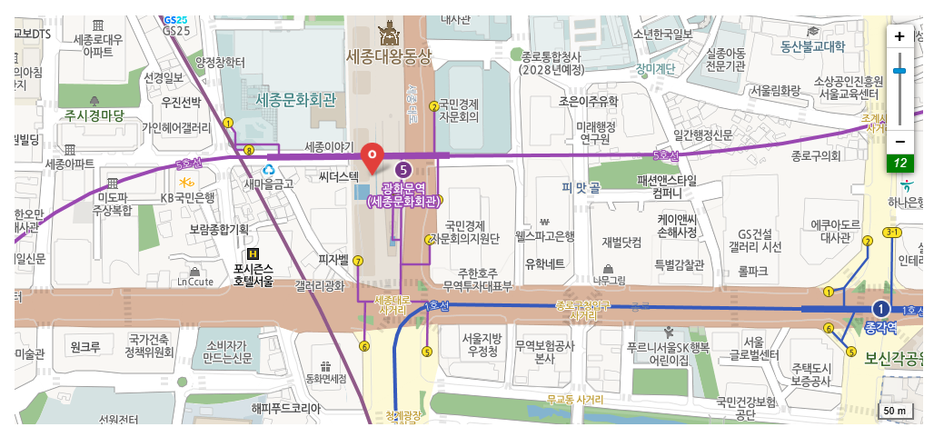 - 🚇 지하철 5호선 광화문역 7번출구 도보 약 424m