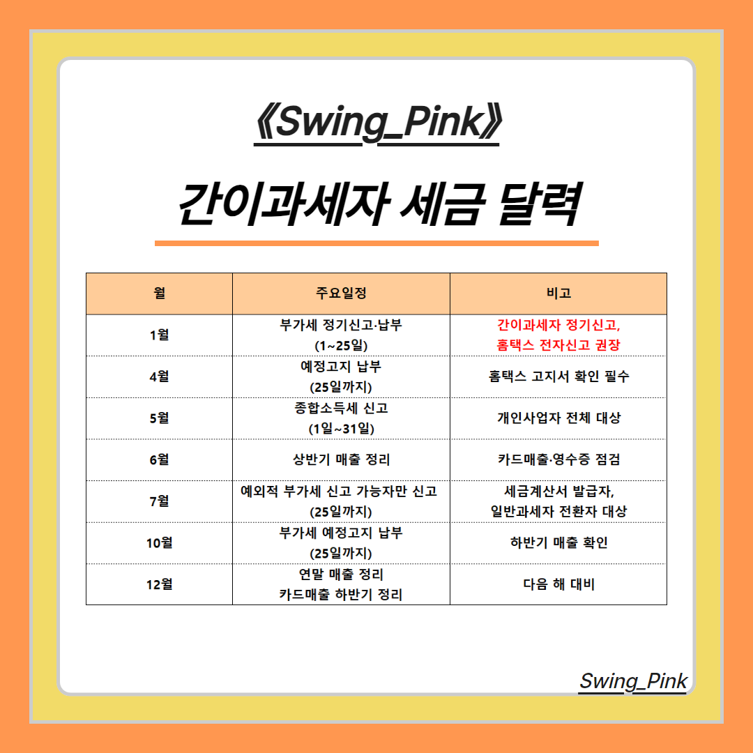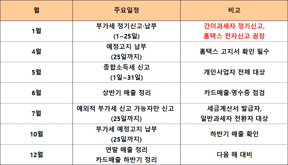 💡 간이과세자도 세금관리는 ‘달력’이 핵심입니다!