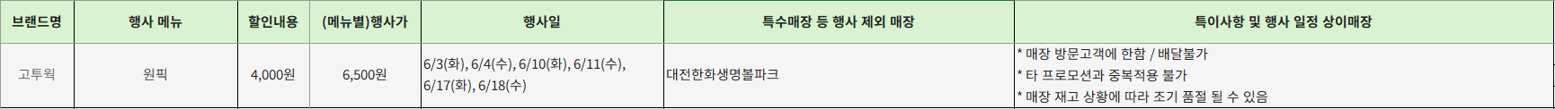 - 특이사항: - 포장 / 배달 불가 - 타 프로모션 중복 적용 불가