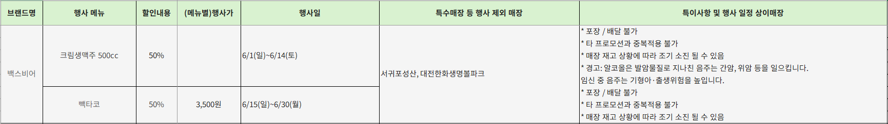- 특이사항: 주류 할인 주의문구 포함, 재고 소진 시 종료