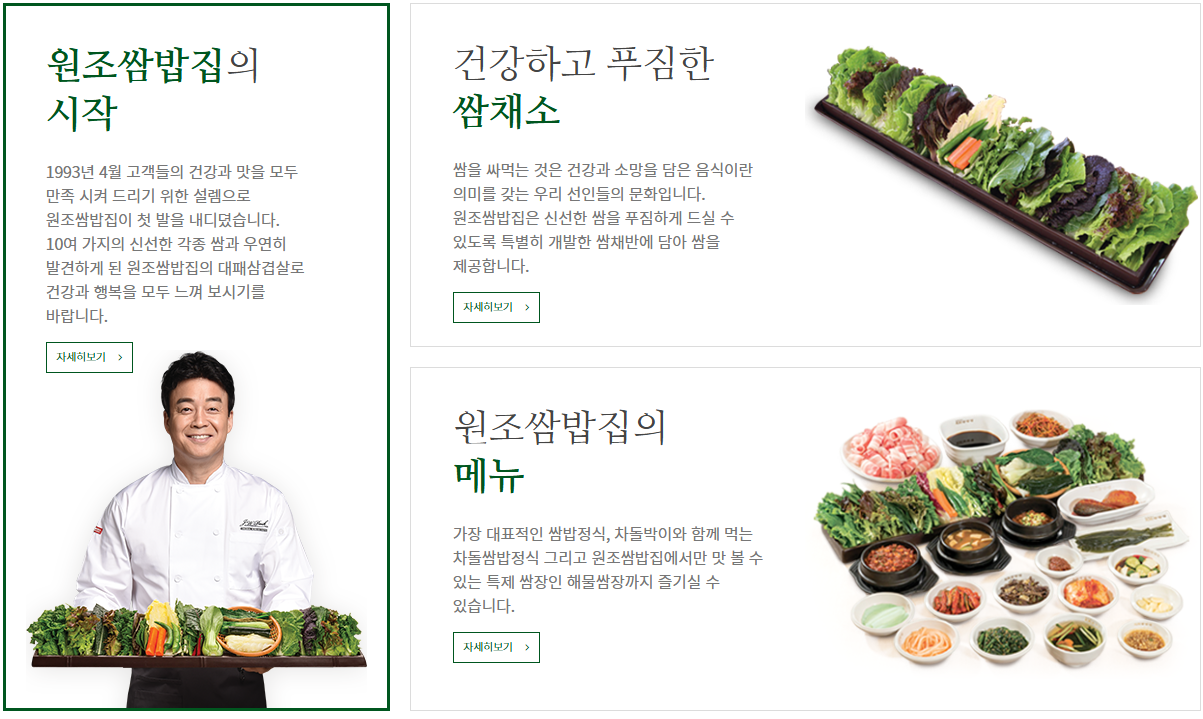 - 할인가: 쌈밥정식 9,000원, 고기추가 7,000원