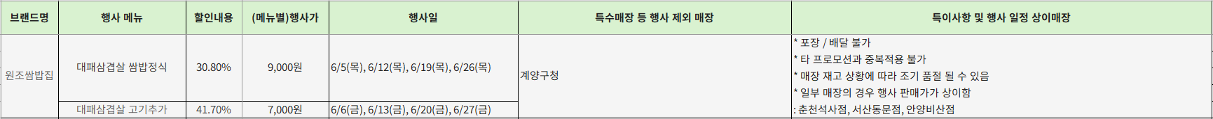 - 행사 기간: 6/5, 6/6, 6/12, 6/13, 6/19, 6/20, 6/26, 6/27