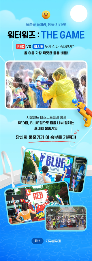 서울랜드 마스코트들과 함께 RED팀, BLUE팀으로 나눠 펼치는 초대형 물총게임!