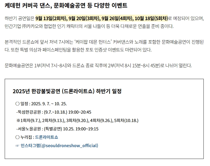 - 행사명: 2025 한강 불빛 공연 (드론라이트쇼)
