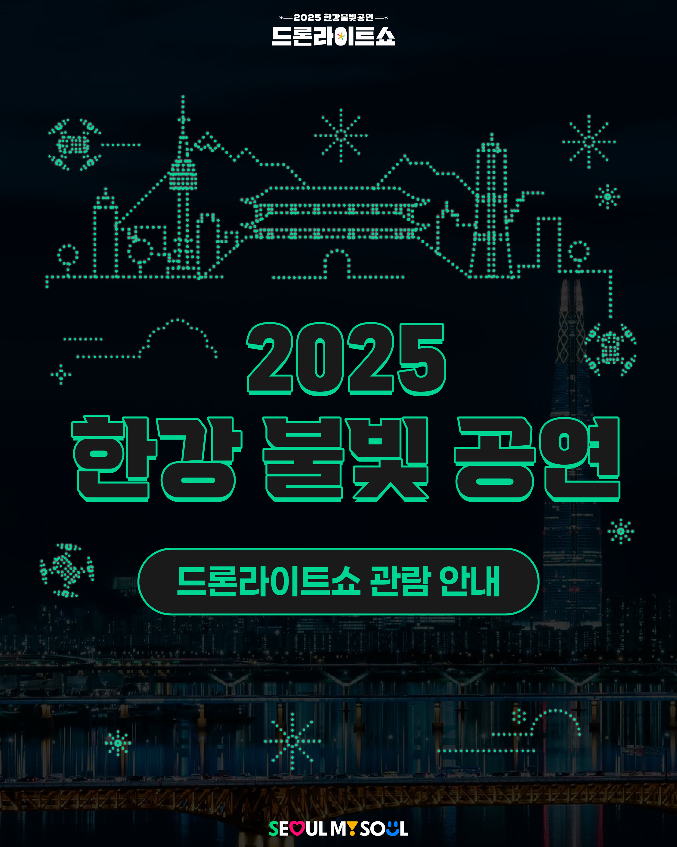 2025 한강 불빛 공연(드론 라이트 쇼)가 올 하반기 뚝섬한강공원에서 화려하게 펼쳐집니다!
