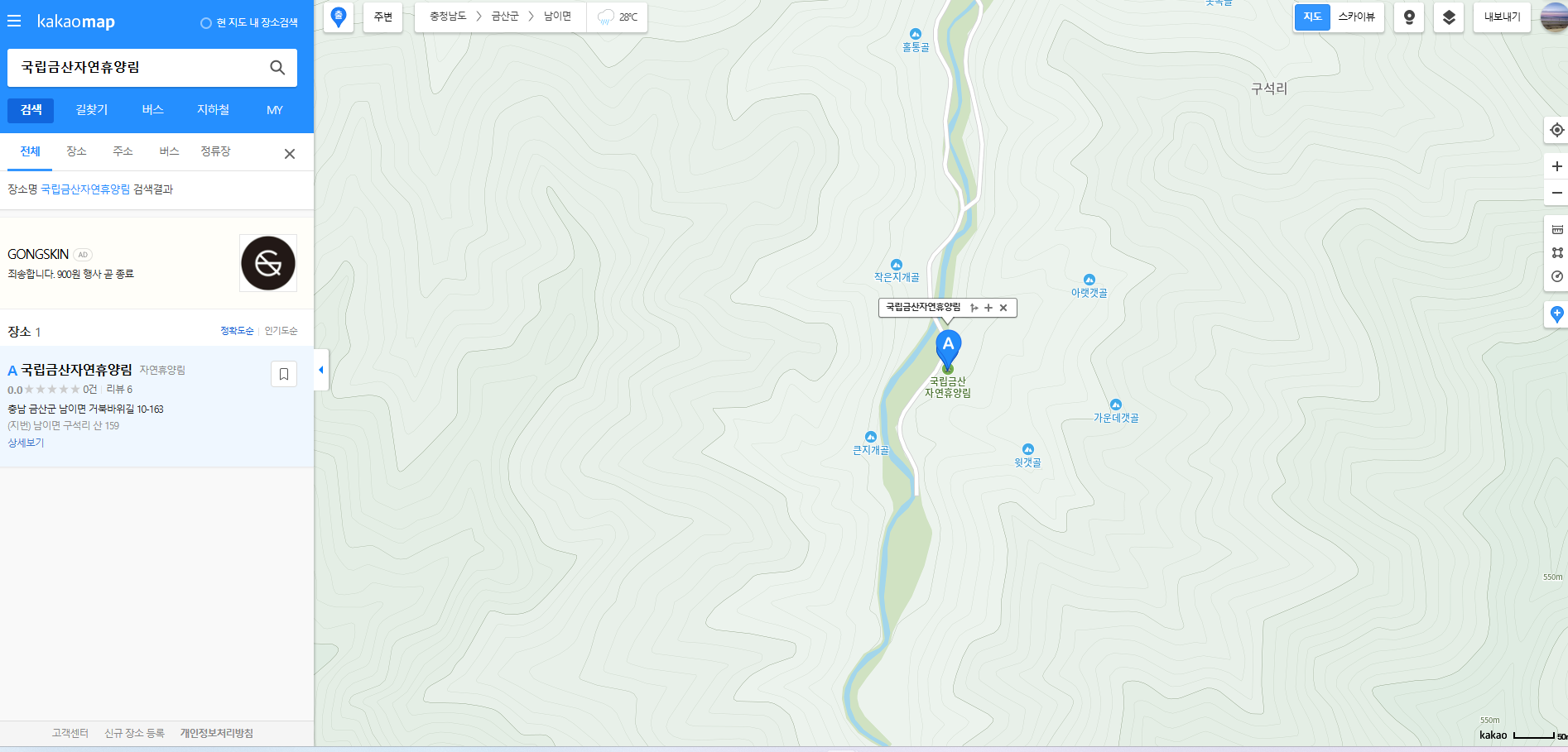 - 내비게이션 : ‘금산자연휴양림’ 검색