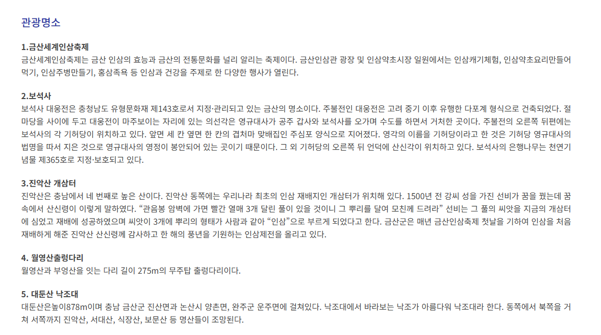 - 주소 : 충남 금산군 남이면 거북바위길 10-163