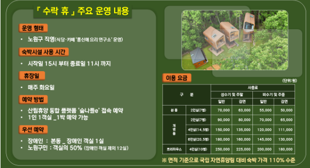 - 예약사이트: 산림청 숲나들e (www.foresttrip.go.kr)