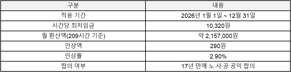 2026년 최저임금은 노·사·공의 극적인 합의로 결정되었지만,